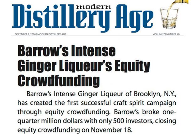 Barrow’s Intense Ginger Liqueur Equity Crowdfunding