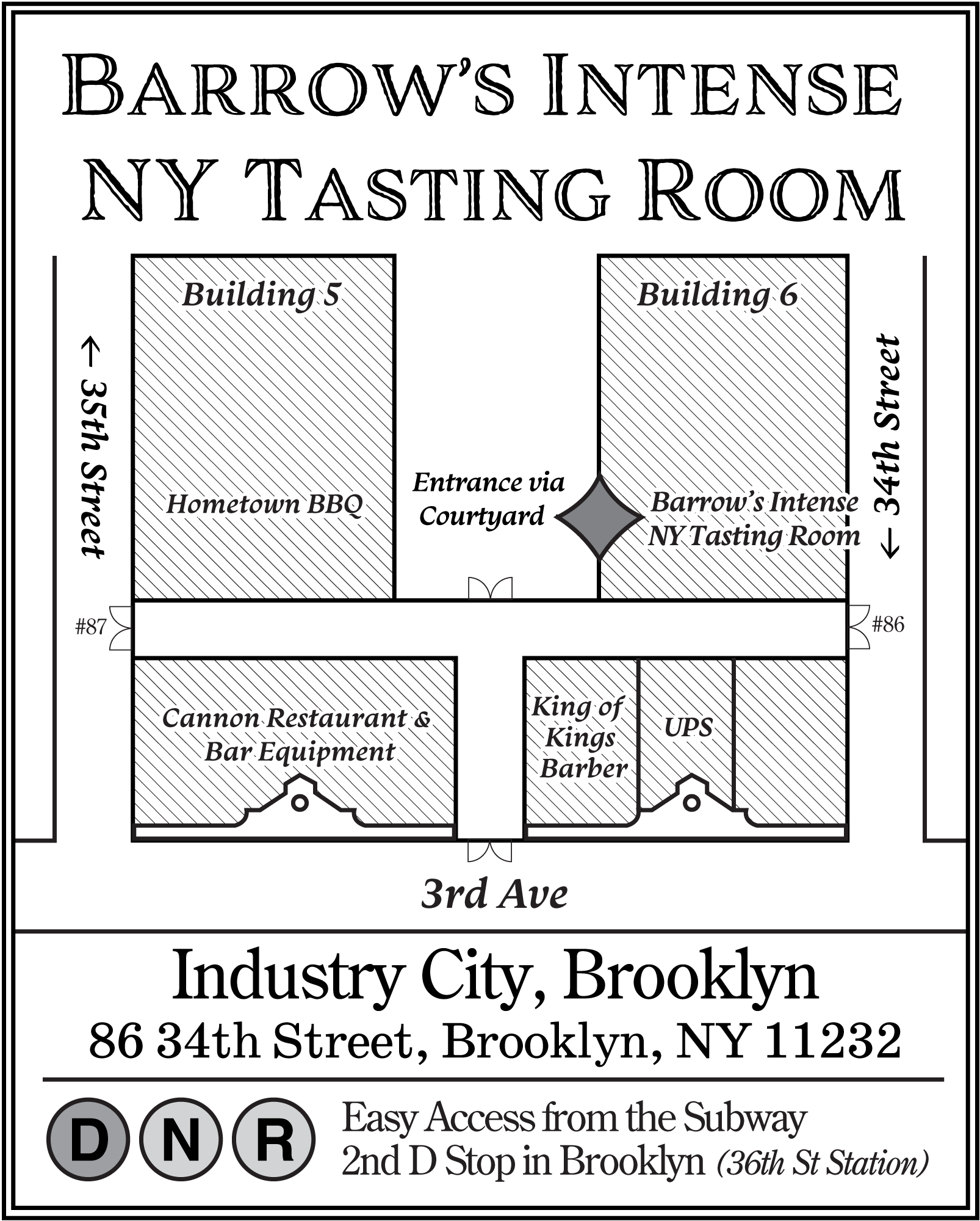Experience New York’s craft spirits movement at Barrow’s Intense NY Tasting Room in Brooklyn, New York. Located inside Sunset Park’s Industry City campus, our comprehensive tasting room and bar features a selection of thoughtfully imagined and seasonal craft cocktails developed with New York State-crafted whiskey, gin, vodka, brandy, and more: with over 200 different bottles representing over 40 distillers, we have the largest selection of New York State spirits in the world.
